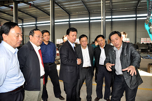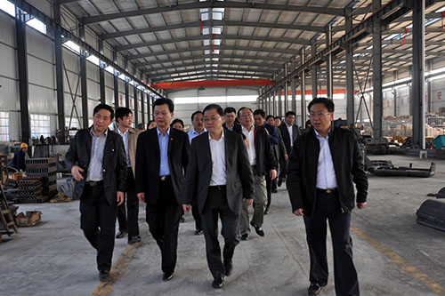 2013年4月19日,市委副書記、代市長嚴(yán)志輝(中)在縣領(lǐng)導(dǎo)的陪同下到公司調(diào)研視察