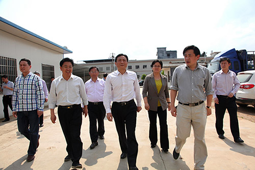 2013年4月19日,市委副書記、代市長嚴(yán)志輝(中)在縣領(lǐng)導(dǎo)的陪同下到公司調(diào)研視察